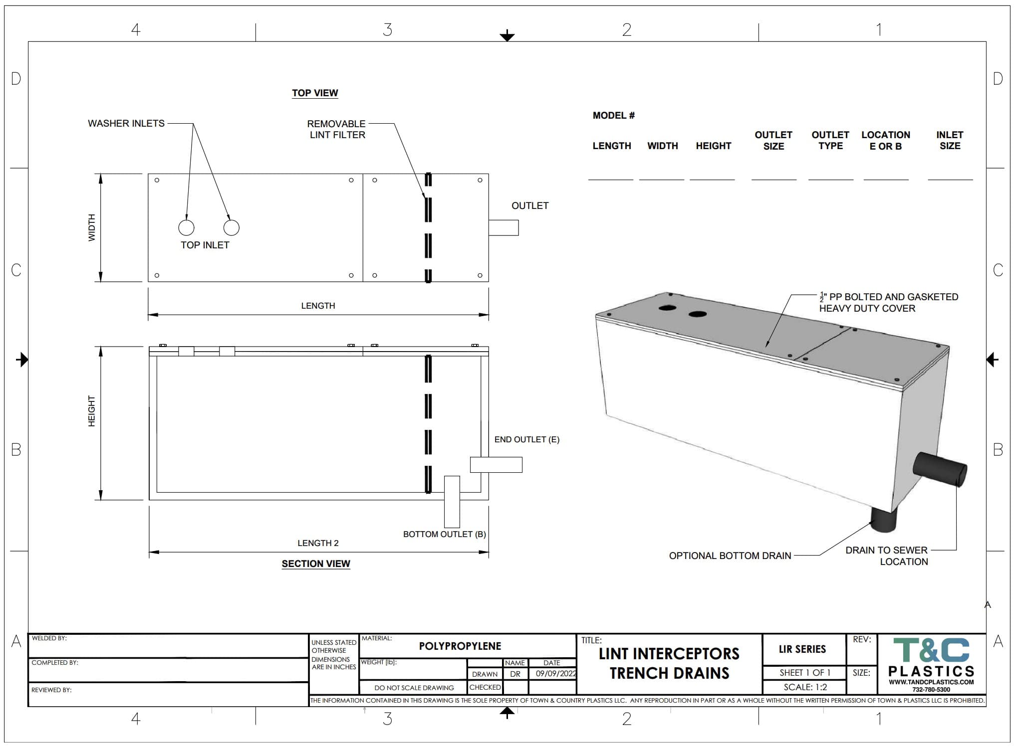 T&C’s Line of HDPE Interceptors is available for grease, oil, solids, and other applications. XL & SS Interceptors can be installed above or below ground with no modifications and come standard with H20 Traffic Rated Covers. All units include a deep seal trap covered by a lid, internal air relief by-pass, adjustable lid system, stainless steel calibrated orifice plate (internal flow control), sample port access, and 4" no hub inlet and outlet connections.